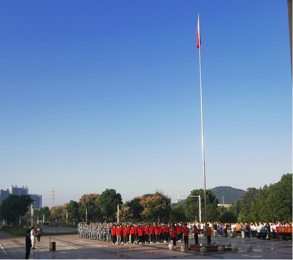 清晨,支部书记费白露携支部党员早早的来到秀山校区主教学楼广场等待仪式开始。上午7时,校国旗护卫队擎着鲜艳的五星红旗,迈着整齐的步伐向旗台迈进。随着国歌声响起,我院机器201学生李成辉作为升旗手将五星红旗升起,全体师生行注目礼,齐唱国歌。之后,学生代表在国旗下献词,全体师生回应响亮的“请党放心,强国有我”的誓言。