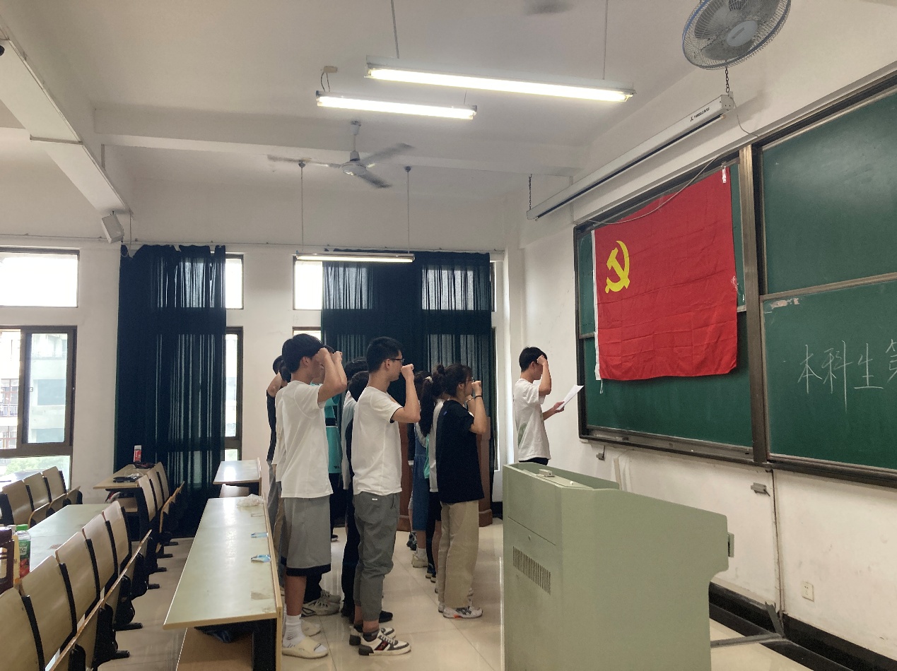 支部书记章军向参会党员汇报了应出席党员、正式党员人数与实际到会人数,到会人数不少于支部党员数的五分之四,宣布会议有效。16名发展对象宣读入党志愿,汇报对党的认识、入党动机、本人履历、现实表现,并提出入党申请。入党介绍人介绍发展对象的主要情况,支委会分别报告了16名发展对象教育考察情况并表明发展意见。全体参会党员推选何士成为唱票人,吴汪箭为计票人,王朕为监票人。全体正式党员投票表决,对发展对象的现实表现进行了认真评议。支部书记章军宣读支部大会决议16名发展对象全票通过,同意接收为中共预备党员。最后,本次发展的16名预备党员在支部委员王朕同志的带领下,面对党旗,庄严宣誓。(撰稿人:陈洁 审核人:李克明)