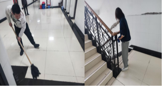 志愿者们提前准备扫帚、簸箕、拖把,抹布等工具,各党小组按照任务分工,有条不紊、认真投入到活动中。有的负责清扫,有的负责拖地,将机械楼各楼层走廊、墙壁及各个角落的彻底冲刷清扫。在大家辛勤劳动下,清扫过后的机械楼焕然一新,又增添了一份洁净。学生党员以身示范,用行动营造整洁、美丽的校园环境。