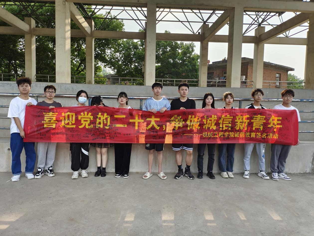 活动伊始,主持人首先进行了诚信教育的宣讲,强调诚信是中华民族的传统美德,是一个民族发展和延续的基石,是新时代大学生立身为人、成长成才的必备品质。之后,同学们响应学院号召,积极在印有“喜迎党的二十大,争做诚信新青年”的条幅上郑重签上自己的名字,现场气氛活跃。横幅上密密麻麻的签名,不仅是同学们庄重的承诺,更显示着同学们的呼声和坚定不移的决心。大家纷纷表示,把诚信写在脸上,把诚信装在心里,做诚信学子,创诚信校园,从我做起,从点滴做起。