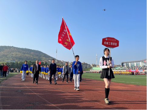 旗帜的引领下,学院党政领导带领师生步伐整齐地走过主席团,手持拉拉队花的学生们朝气蓬勃,昂首向前,展现了成年人动漫