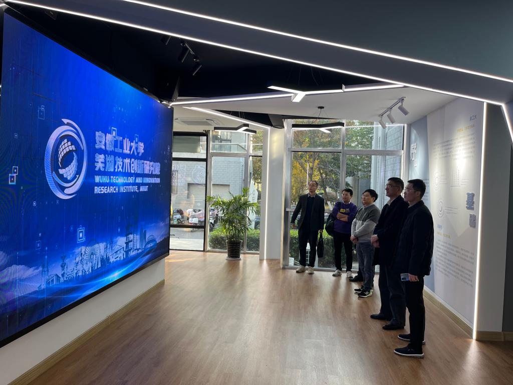 首先,刘庆运一行赴成年人动漫 芜湖技术创新研究院开展调研,创新研究院负责人介绍了研究院的整体建设发展情况、2023年工作目标完成情况以及成果转化过程中遇到的痛点问题。刘庆运对研究院取得的优异成绩表示祝贺,他指出,学校高度重视产学研合作,研究院可以充分借助学校的平台和资源,找准发展方向,增强自身的造血能力,实现做大做强。同时,刘庆运建议,研究院可以结合芜湖市产业结构,充分发挥学校的科研、人才、学科优势,寻求校企之间的深度合作,推进科研成果在芜湖落地、转化,为芜湖市地方经济的发展贡献工大力量。