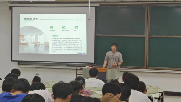 马帅同学从大学成长规划、职业选择等方面进行了分享,传授了简历撰写与修改、面试准备等方面的经验和技巧。并寄望同学培养成熟的心态、思维与行为方式,科学规划求职目标,夯实专业理论基础,提升求职实践技能,明确就业的目标和方向,以更加积极的态度和方式面对大学生活和职业选择。