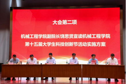 院长刘庆运致开幕辞,代表学院向长期以来关心和支持学院科技创新、文体工作发展的各级领导、老师、社会各界人士表示衷心感谢,向工作人员致以问候。他指出,科技创新作为支撑国家崛起的筋骨,贯穿于中国式现代化进程的全过程,始终发挥着不可替代的作用。他结合学院教授团队近期取得的重大学术科研成果,强调学院连续15年举办科技创新节初衷就是传承科学精神,弘扬创新风尚,涵养优良学风,勇攀科研高峰。他向大会通报了机械学子在上一年科技创新中取得的优异成绩,指出大学生作为新时代的青年力量,肩负着探索科学奥秘、推动技术进步的重任勉励全院学生在纵向深化中夯实数理根基在横向贯通中培育交叉思维在时空延伸中树立时代眼光,以敢为人先的锐气、上下求索的执着、十年磨一剑的定力,将批判性思维化作探索利刃,让终身学习成为成长基因,使创新意识融为精神底色,在新质生产力的发展蓝图中镌刻属于青年一代的奋斗印记。