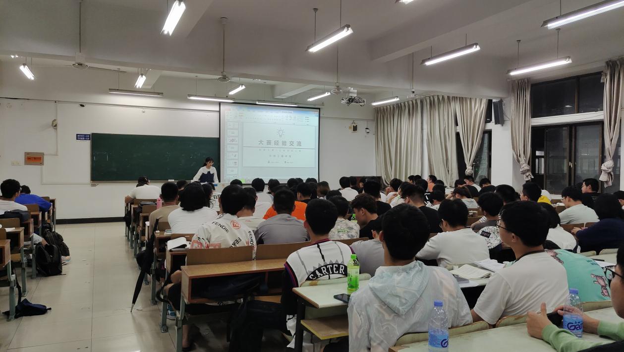 活动开始,刘宁宁为大家播放一段关于仿生机械的视频,吸引了同学们的注意力,引出了今年机械创新设计大赛的主题“自然·和谐”,涉及“仿生机械”、“生态修复”2个内容。之后,刘宁宁向大家分享了自己与团队在几项省级、国家级赛事中的参赛经验及需要掌握的相关技能,同时详细介绍了机械设计大赛的报名方式、参赛过程,鼓励同学们把握住参加2年一次的机械创新设计大赛的计划,动员同学们积极参赛。