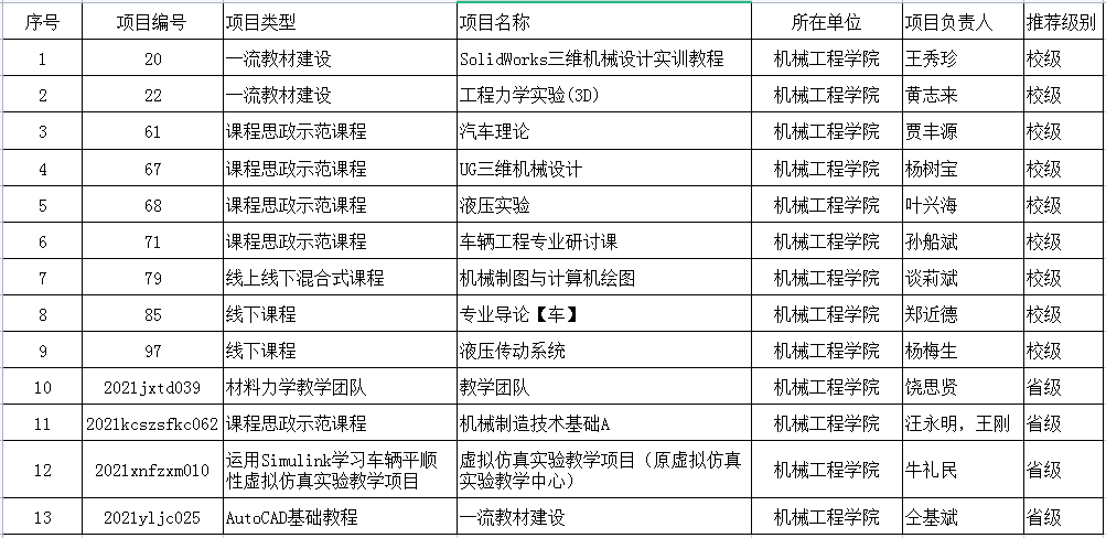 2021年质量工程项目