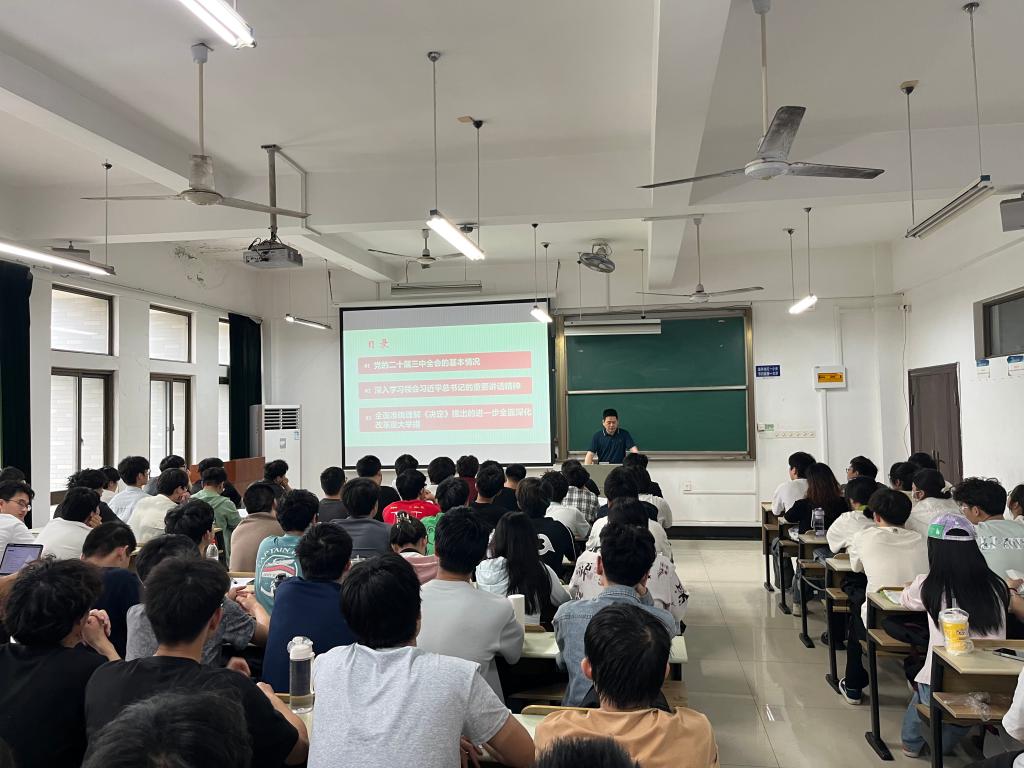 第四十九期学生入党积极分子培训班正式开班。开班式上,学院党委书记吴文兵强调,入党积极分子培训是发展党员工作的重要环节,是确保党员发展质量的关键步骤,全体参训学员要珍惜学习机会,端正学习态度和入党动机,严守培训纪律,发挥先锋模范作用,以实际行动向党组织靠拢。随后,吴文兵为140余名入党积极分子讲授党的二十届三中全会精神专题党课。