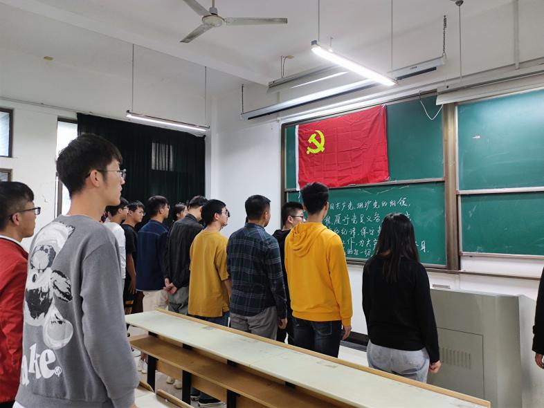 最后,全体党员起立对着党旗宣读入党誓词,支部书记王琴老师对此次支部大会进行了总结,表示此次支部大会不仅壮大了支部党员队伍,也给党组织注入了新鲜血液。希望大家加入党组织后能够不忘初心,牢记使命,继续加强理论学习,在生活中发挥自身的优良品质,发挥党员的先锋模范作用。(撰稿:王琴 审核:李克明)