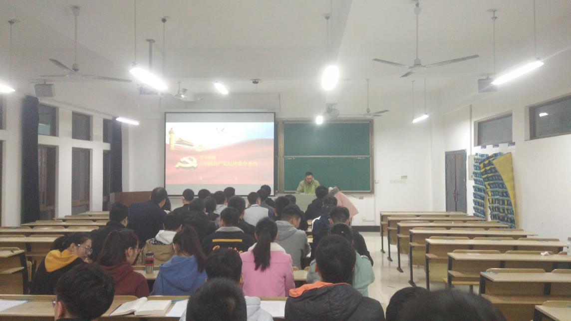 本科生第一党支部党支部于机械楼405教室集中学习了新修订的《中国共产党纪律处分条例》(以下简称《条例》),会议由党支部书记章军主持。