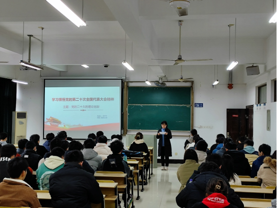 同时,各年级辅导员分别在学习会后主持召开了“学思践悟二十大”主题班会,组织学生就宣讲内容分组展开讨论,引导学生既要怀揣梦想又要脚踏实地,立足当下充实自己,努力成为有理想、敢担当、能吃苦、肯奋斗的新时代好青年。