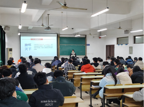 大学生宣讲团成员刘宁宁、孙凤月、张子强、崔丽娜等同学主讲,全体机械学子参加。