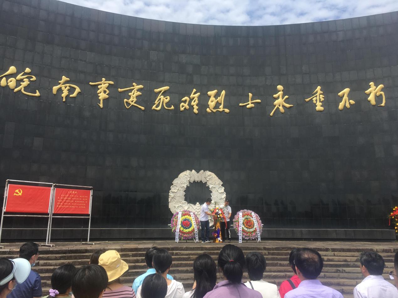 党委书记徐柳根带领全体党员同志在此举行了默哀仪式,给烈士敬献了花篮并在鲜红的党旗下集体宣誓,缅怀革命先烈,重温初心使命。