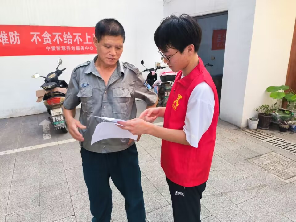 实践队员向社区附近户外商贩、门卫的户外工作者及聚集在一起下棋娱乐的老年人宣传了高温防中暑知识,提醒高温天气应减少户外活动、注意补充水分,如因工作原因,不得不室外工作,一定要及时关注自己呼吸、心脏状况,如呼吸急促困难,应及时向拨打急救电话,或向临近商家求助,坚持安全第一。(撰稿:费白露 审核:李克明)