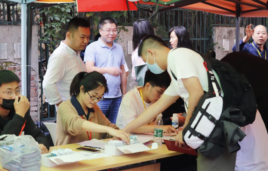 的迎新志愿队伍便在佳山校区四号楼楼下准备就绪,等待着新生们的到来。报到全流程无缝式衔接,有条不紊,高效便捷。引导讲解、维持秩序、搬运行李、宿舍入住……志愿者们忙前忙后,乐此不疲。学院领导、2020级辅导员也始终在迎新现场坚守岗位,关注迎新秩序。