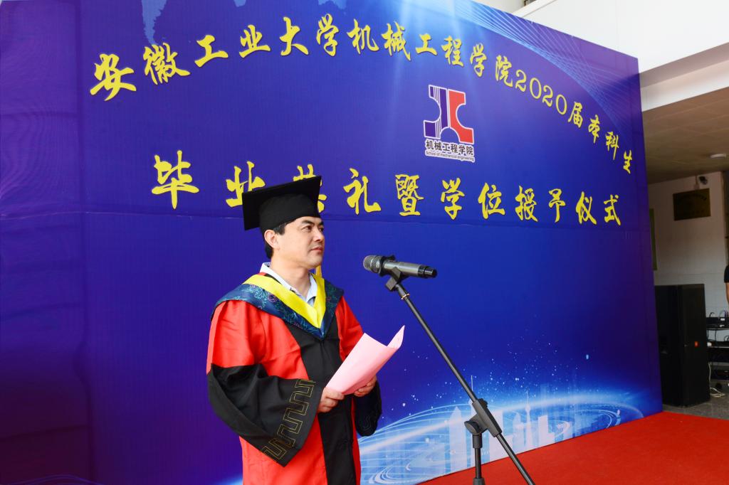 于机械楼一楼大厅举办了一场特殊的毕业典礼。屏幕上的我们与屏幕前的你,纵然相隔千里,无妨如约而至。典礼由院党委副书记、学生工作副院长李克明主持,校学生工作部部长何伟受邀出席,院党委书记徐柳根、院长王孝义携院领导班子成员、导师代表出席典礼,112名毕业生代表参加典礼,约3千3百余人线上观礼。