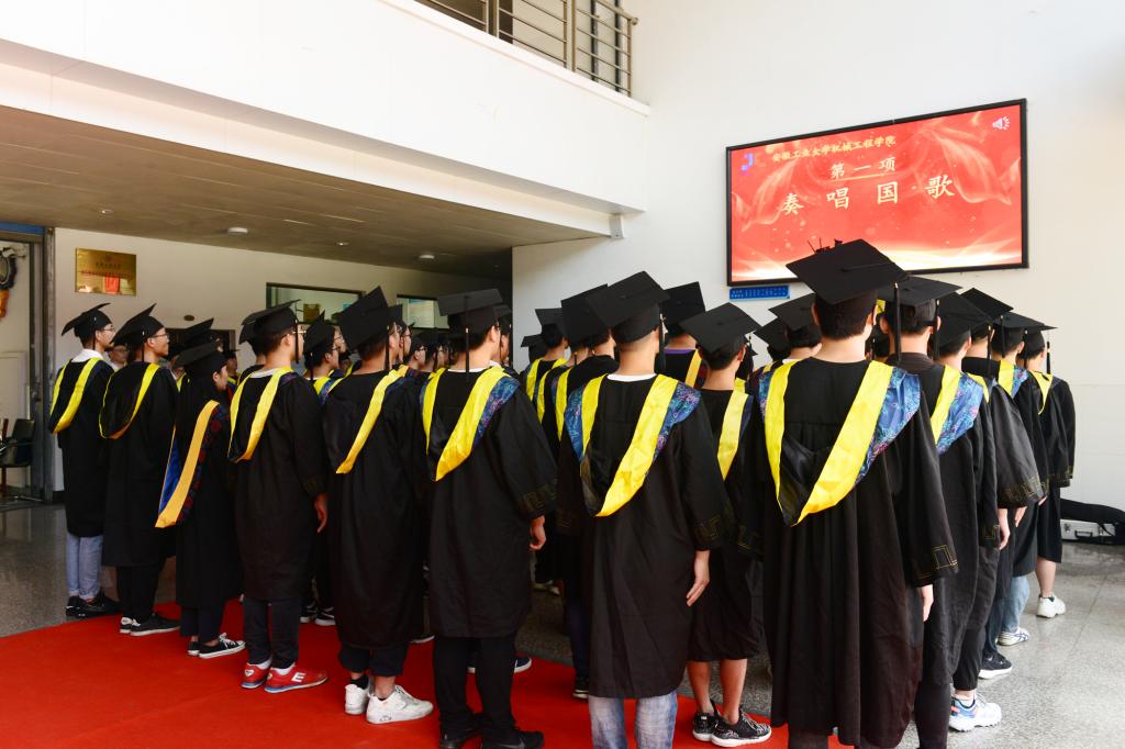 毕业典礼暨学位授予仪式共有六项议程。首先,奏唱国歌。之后,成年人动漫