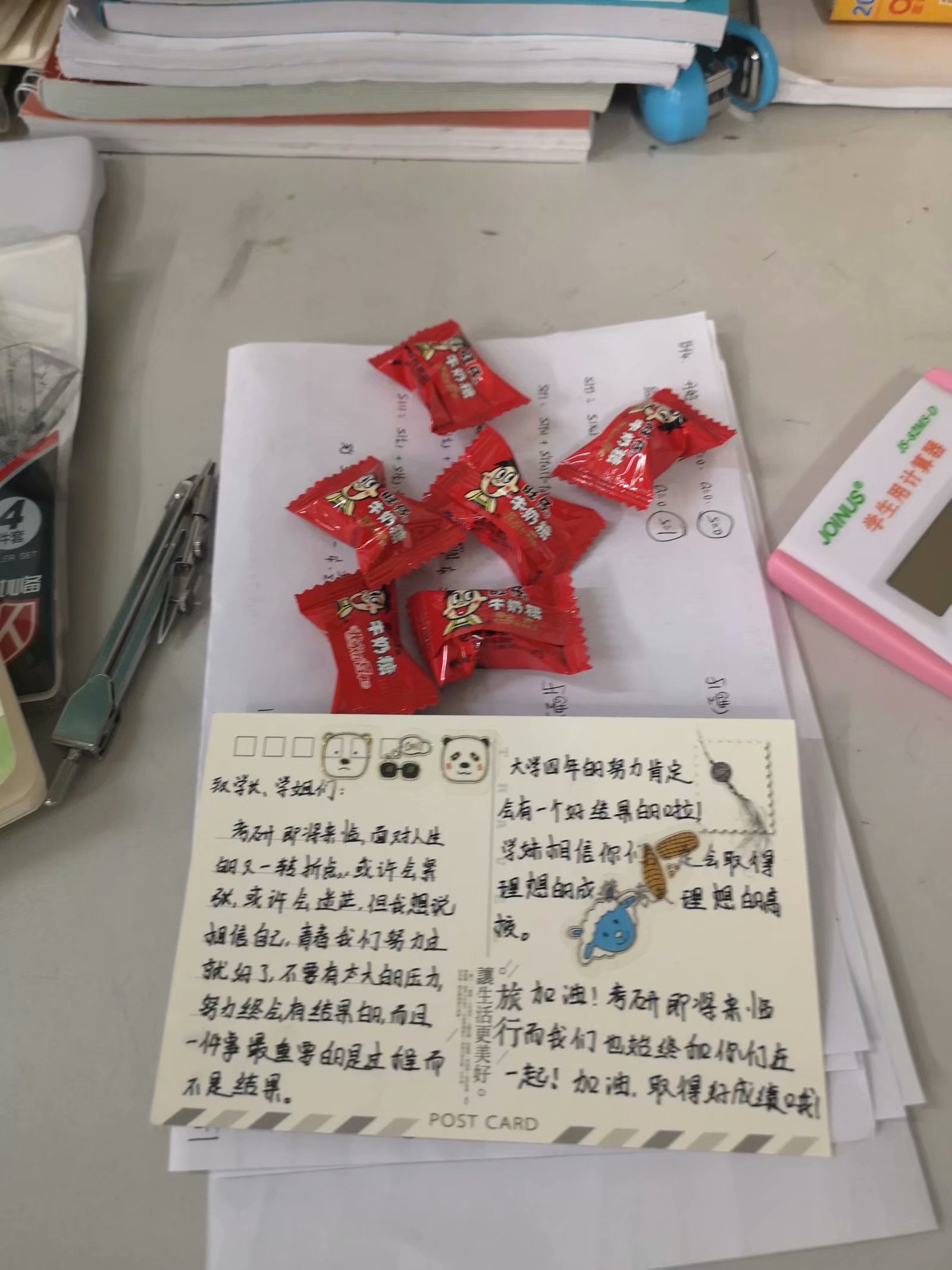 得到学弟学妹的祝福和鼓励,大四学生倍感鼓舞,精美的信封、温暖的话语,饱含机械学子的祝愿;一句句问候,一声声祝福,表达了对学长的关心。经历了风雨,终将见彩虹!衷心祝愿我院学子取得佳绩,实现梦想!(撰稿:王琴;审核:李克明)