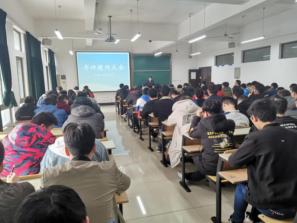 于机械楼405举办了机械学子考研慰问大会,会议由16级辅导员费白露主持,学院学生工作副院长、院党委副书记李克明及全体2016级考研学生参加了此次大会。