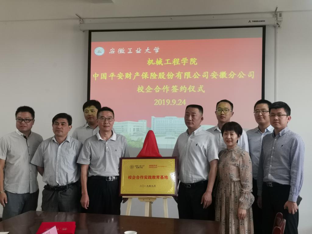 与中国平安财险股份有限公司安徽分公司“校企合作”签约仪式在机械楼302会议室举行。中国平安财险股份有限公司马鞍山中心支公司总经理陈青、中国平安财产保险股份有限公司安徽分公司人力资源部经理孔凡荣、安徽分公司车意理赔部经理吴刚、安徽分公司车意理赔部车物管理团队经理朱佳、安徽分公司人力资源部发展规划室经理方业成、马鞍山中心支公司理赔部经理张永鹏、成年人动漫