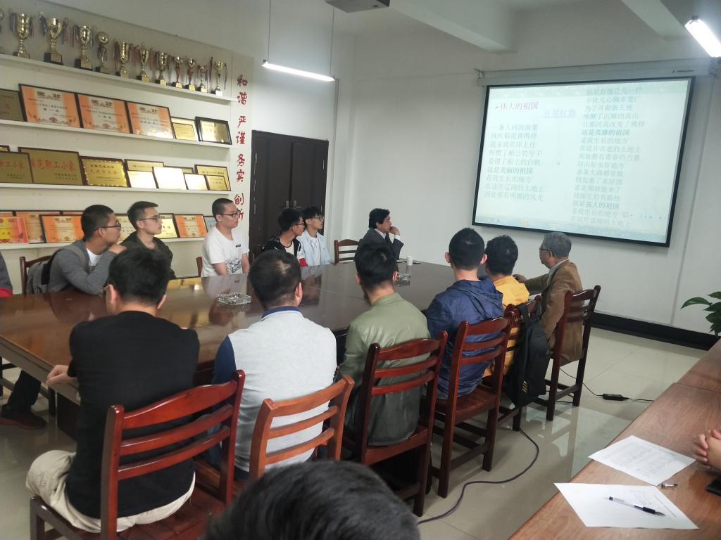 座谈会伊始,方庆官老师首先带领同学们共同欣赏了一首《歌唱祖国》,并分条解读了歌词中的涵义,细数中华民族上下五千年的历史渊源。紧接着,方老师与大家一起回顾了中华人民共和国七十年来的风风雨雨,讲到共产党人为祖国的发展艰苦卓绝,把“为人民服务”作为宗旨,扎根基层,服务大众,在自己的岗位上兢兢业业,散发出燎原之火的星星光芒。最后,方老师结合自身经历鼓励与勉励在座青年,实现中国梦是几代中国人的梦想,当代青年应当承担起历史责任,树立坚定理想信念,脚踏实地,努力学习,努力工作,走出自己的道路。与会同学也结合自己的感受与经历,交流了70年祖国的变化,表达了强烈的爱国之情。