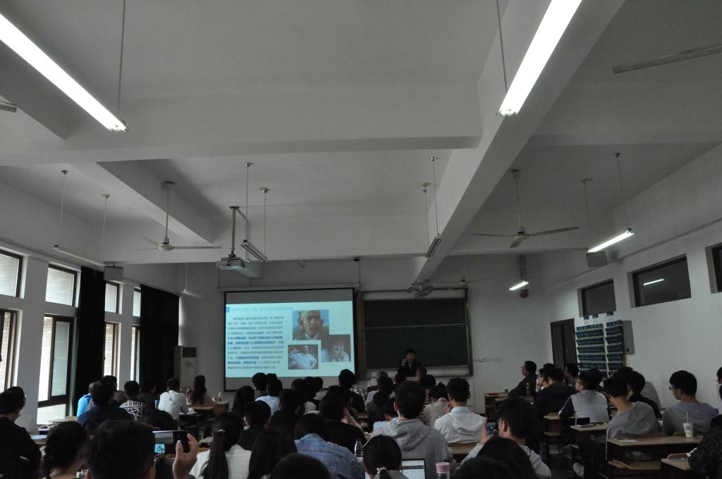近百名师生在机械楼405教室先后聆听了《找准生态位,看职场小白如何错位逆袭》和《液压颂》两场专题报告,报告由成年人动漫