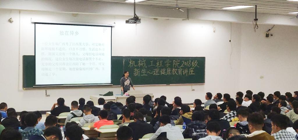 2018级新生入学适应教育于佳山校区教三南203成功举行。院团委书记、心理工作站站长、18级辅导员王琴老师担任本次讲座主讲人。活动由院心理部组织策划,机械18级新生全员参与。