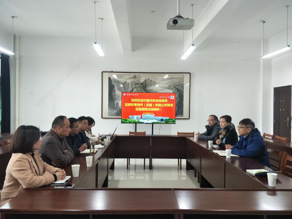 与宁国市科技局、亚新科零部件(安徽)有限公司在机械楼404会议室召开访企拓岗座谈会,宁国市科技局副局长纪亦辉、亚新科零部件(安徽)有限公司人力资源总监李长春一行与学院领导老师深入展开交流,交流会由成年人动漫