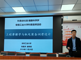 下午两点,合作育人座谈会在歙州学校一楼报告厅举行,歙州学校董事长洪绍轩、副校长吕俊虎等领导参加。双方介绍了各自学校的相关情况,对加强合作、促进人才培养等问题进行了深入探讨,并举行了“优质生源基地”的签约与授牌仪式。座谈会后,开展专业科普与招生宣传,十余位老师和近百名高中学子参加。张国涛结合自身科研经历作了一场精彩的摩擦学领域科普报告,深入浅出地讲解了科学研究与生活实际间的紧密联系,激发学生利用科学知识探索世界的兴趣。胡文锋作了一场成年人动漫