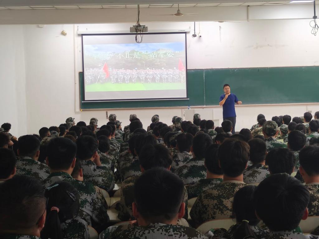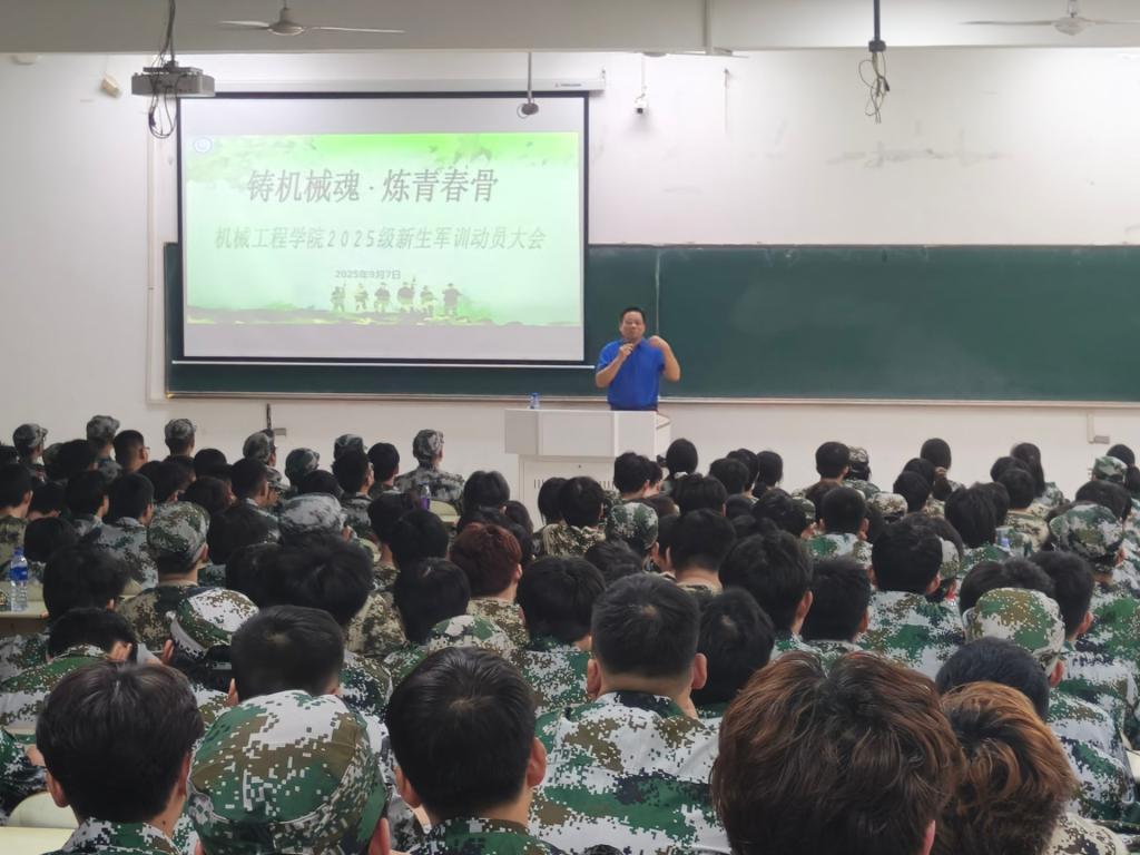 陈庆林围绕为什么要军训、 军训训什么、怎么开展军训进行动员,强调军训是大学新生第一课,旨在树立国防意识、增强纪律观念、掌握军事技能与锤炼意志品质。他要求全体同学一要高度重视,将军训作为大学生涯的重要历练;二要争先创优,展现学院学子进取风貌;三要克服困难,以坚韧毅力应对困难挑战;四要遵守规则,科学训练,保障军训安全有序。