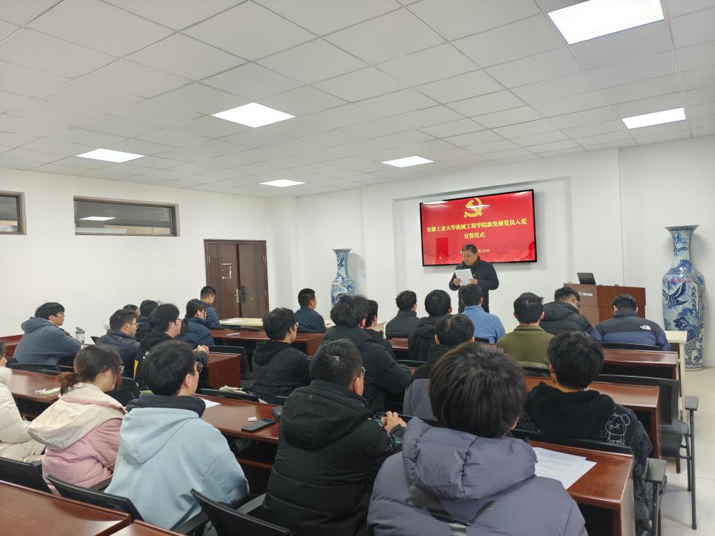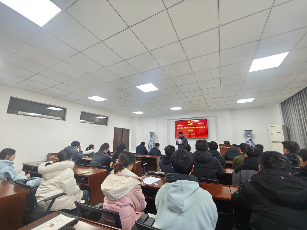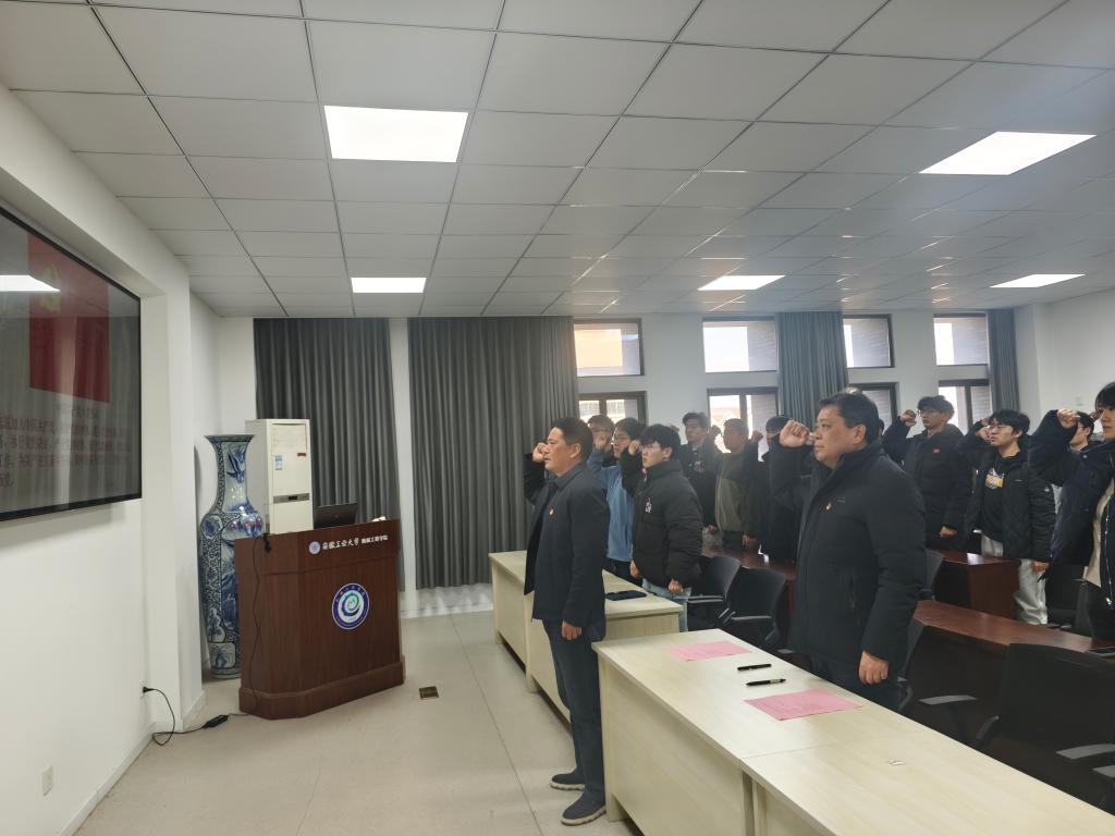 在机械楼 404 会议室举行新入党党员集体宣誓仪式。学院党委书记吴文兵、副书记陈庆林、新入党党员及老党员代表参加,仪式由党委秘书周环主持。