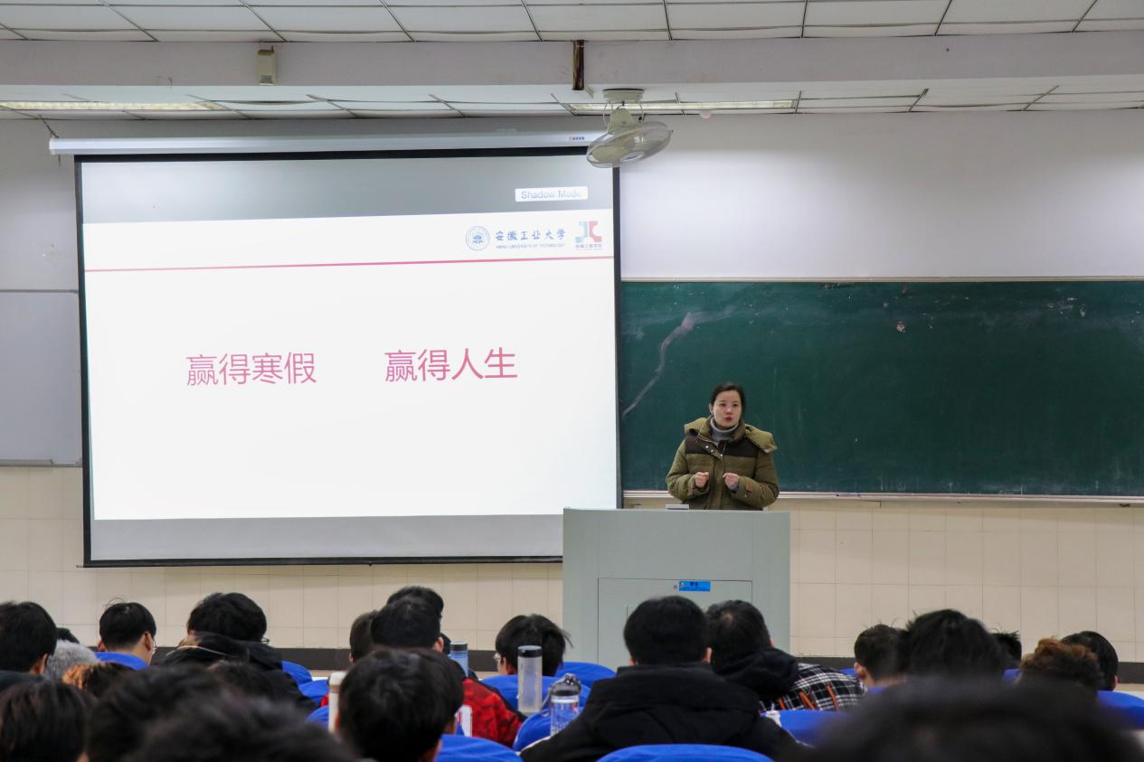在阶梯教室102召开2019级学生期末年级会,会议的主题是“赢得寒假,赢得人生”,2019级学生参加了此次大会。会议由辅导员王琴老师主持。