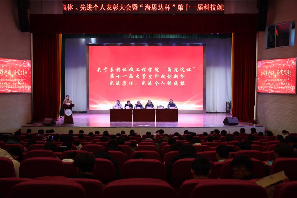 在秀山校区大学生活动中心隆重召开2020—2021学年本科生先进集体、先进个人表彰大会暨“海思杯达”第十一届大学生科技创新节闭幕式,学院领导徐柳根、李克明、汪永明、“海思达”机器人有限公司董事长张良安出席了颁奖仪式,学院各系主任、支部书记、全体辅导员、各年级本科生代表参加了大会,大会由院团委书记费白露主持。
