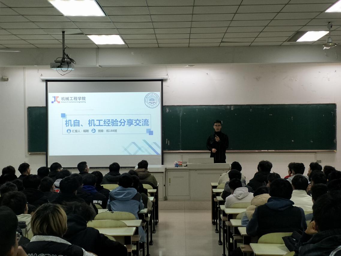 分享会上,杨刚同学结合自身经历围绕学习方法、竞赛经历、学生工作、保研经历等与2021级机自、机工专业的同学进行了深入细致的交流,并提醒大家要平衡好学习与工作,养成良好的学习生活习惯,学会主动争取、把握机会,踏踏实实地做事,珍惜大学时光。