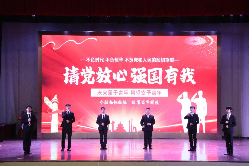 推选出机器211班董立杰等8名同学参加校级决赛。经过漫长的等待,我院参赛队伍最后一个出场,选手们或激情澎湃、或款款深情,以饱满的热情、起伏的声调、沉稳的舞台展现力圆满完成节目《青春颂党恩,筑梦新征程》,赢得了评委和观众的阵阵掌声。