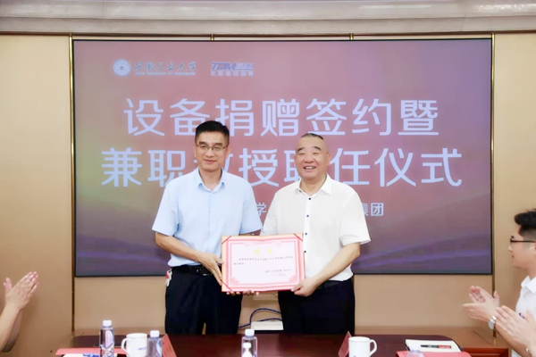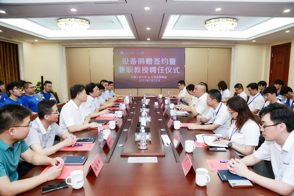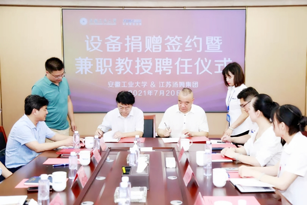 教育事业的发展表示衷心感谢,并介绍了学校的发展历程以及在人才培养、创新创业、产学研合作等方面的成效。魏先文指出,一要抓住契机,深化合作。要发挥学科优势,加强就业创业、产学研等全方位合作,为公司提供更多的智力支持;二要用好设备,发挥功效。要把接受捐赠作为一种激励和鞭策,发挥捐赠的生产线设备在教学、实践中的积极作用,让这条生产线成为学生长知识、增才干的主要阵地,成为老师科研成果转化的重要战场;三要校企协同,联合育人。魏先文邀请汤建华董事长为学生讲授就业技巧、职场经验,为学院学科建设、科研合作传经送宝,充分发挥兼职教授的重要功能。