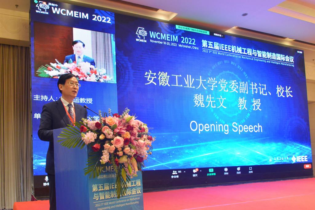 、芜湖技术创新研究院、特殊服役环境的智能装备制造国际科技合作基地、特种重载机器人安徽省重点实验室、安徽省智能破拆装备工程实验室和AEIC学术交流中心联合承办的第五届IEEE机械工程与智能制造国际会议(WCMEIM 2022)在马鞍山召开。校长魏先文教授和华中科技大学丁汉院士共同担任本次会议主席。