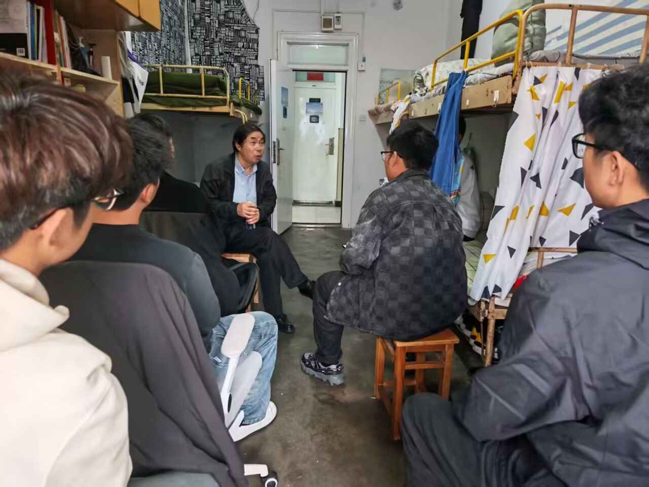 走访过程中,各位老师与新生们进行亲切友好的交流。“家乡是哪里的?”“学校的伙食怎么样?”一句句贴心的话语瞬间拉近了师生间的距离。老师们细致地询问同学们的生源地、入学感受,耐心解答同学们关于专业学习、学科竞赛等方面的疑问,并鼓励他们尽快转变角色,熟悉新环境,融入学院大家庭。